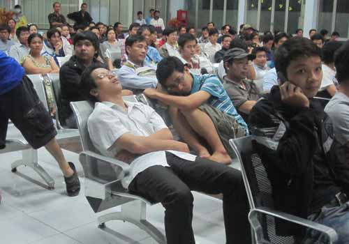 | Nhiều khách thấm mệt sau một đêm vật vờ.