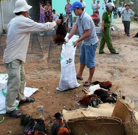 | Đàn gà chọi 50 con bị đoàn kiểm tra bất ngờ đập chết. |