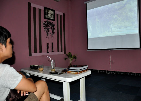 | Phòng chiếu phim ở quán Say. Ảnh: Kiên Cường |