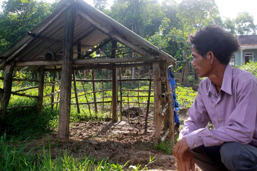 Ông Nguyễn Năng Hạnh (53 tuổi, trú ở đội 3, thôn Phú Hưng, xã Hải Phú, H. Hải Lăng, Quảng Trị) tiếc rẻ nhìn cái chuồng bò trống không