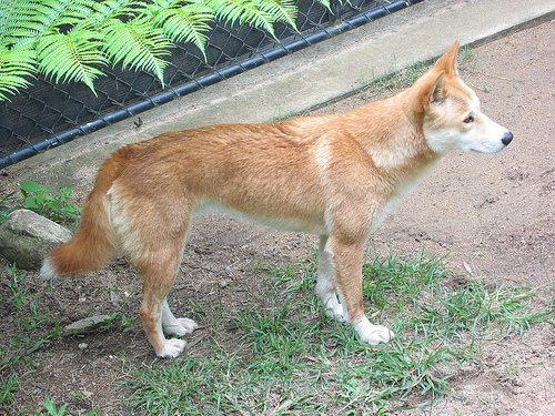 | Dingo Đông Dương thường có 2 màu lông vàng và đen. |