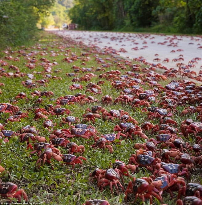 Daily Mail ngày 16/11 cho hay, sự việc xảy ra trên đảo Phục sinh ở Thái Bình Dương, thuộc Úc. Đây là cuộc di chuyển hàng năm lớn nhất thế giới, cua vào mùa sinh nở thường bò từ hang trong rừng ra biển đẻ, sau đó khoảng 9 ngày lại trở lại hang, trên hành trình cua mẹ và con trở về thường bị kiến vàng và nhiều loài khác bắt ăn thịt.