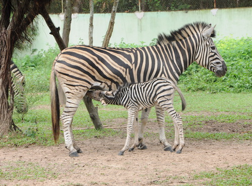 Sau 8 tháng mang thai, ngựa vằn tự sinh sản không cần đến sự can thiệp của thú y vườn thú. Vài giờ sau khi sinh, chú ngựa vằn được xác định giới tính là con đực phát triển rất khỏe mạnh, chú bắt đầu chạy nhảy và tự tìm bú sữa mẹ.