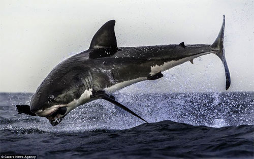 Những bức ảnh tuyệt vời về chú cá mập trắng này do nhiếp ảnh gia Dana Allen, 50 tuổi, chụp được tại vịnh False (Nam Phi).