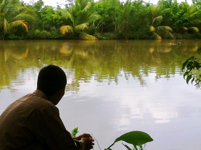 | Khu ao cá của ông Sương rộng như thế này thì việc lùng một con sấu khá gian nan |