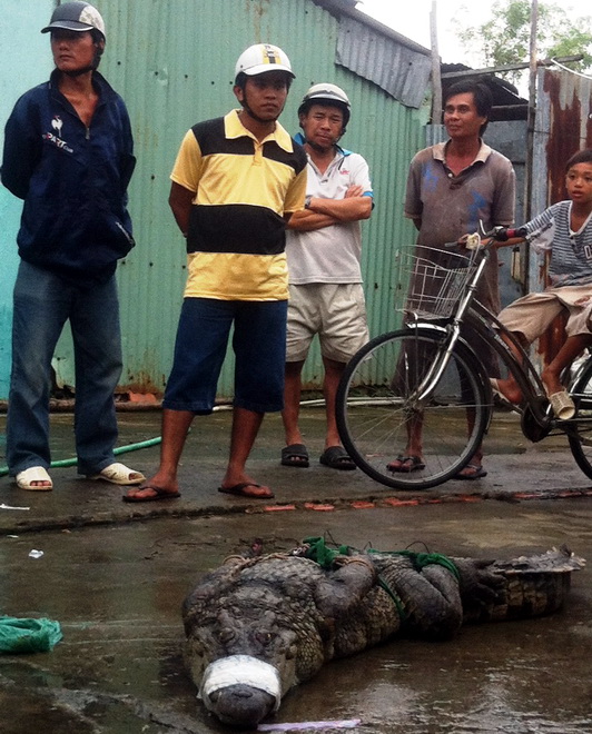 | Cá sấu sổng chuồng bị bắt tiếp tục là tâm điểm của cư dân miệt sông nước Cà Mau |