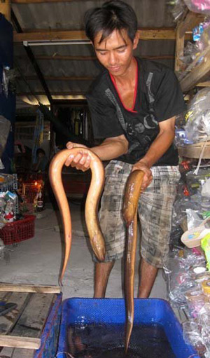 Cũng theo anh Công, dù lươn rất to, nhưng người mua vẫn chọn loại vừa vừa để ăn. Còn những con lươn “khủng” này là loại sống lâu năm, người mua đôi lúc có cảm giác sờ sợ.