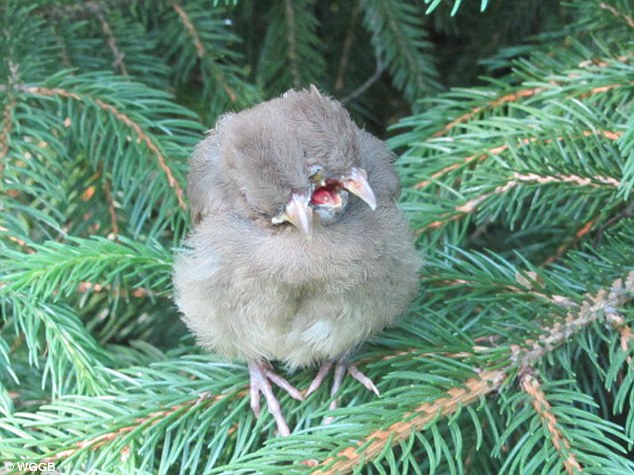 Thấy chim non tội nghiệp chị April Britt đặt nó lên cành cây cao vì sợ mèo nhà hàng xóm vồ mất. Sáng hôm sau ra nhìn đã không thấy nó đâu nữa. Chị lo sợ nó không sống nổi trong tình trạng dị dạng như thế.