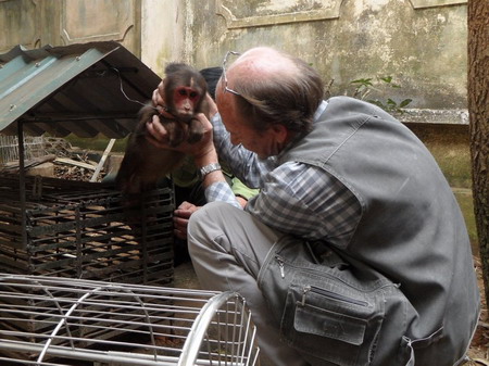 | Kloeble và các cán bộ kiểm lâm Việt Nam bên một con khỉ vừa được tịch thu từ những kẻ nuôi giữ trái phép. Cuộc đấu tranh chống lại sự tàn sát khỉ trong các nhà hàng là cuộc đấu tranh rất gian nan. Cần có cả một hệ thống “tình báo” để có thể tìm ra các nhà hàng đó. Những nhà hàng mới thì mọc lên ngày càng nhiều. |
