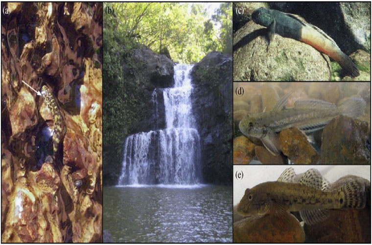 | Loài cá này “bơi” ngược những thác nước ở quần đảo Hawaii, Mỹ để lên phía thượng nguồn thực hiện giao phối và duy trì nòi giống. |