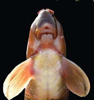 Không giống như những loài cá ăn nổi có miệng nhô lên trên, môi dưới dài hơn môi trên (điển hình là cá rồng), cũng chẳng giống các loài ăn đáy có miệng nằm ngang, hai môi khá đều nhau (như cá chép), miệng cá lạ tôi bắt gặp có cấu tạo rất độc đáo. Miệng loài này nằm nép dưới chiếc mõm khá dài, trên mõm có những nốt sần kỳ dị. Hoá ra những nốt sần ấy có vai trò bảo vệ đầu cá khỏi bị thương tổn khi va vào đá trong dòng nước chảy xiết. Những nốt sần còn phát triển thành gai nhỏ ở con trống để chiến đấu với nhau khi tranh giành con mái vào mùa sinh sản...