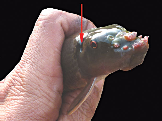 Mõm cá có những nốt sần trông rất kỳ dị.