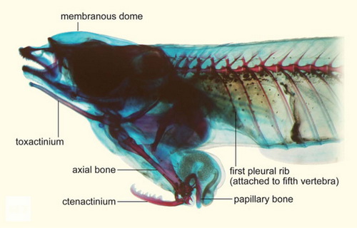 Theo Wikipedia, điểm đặc biệt là loài cá này là có cơ quan sinh dục nằm dưới cằm, ngay phía sau miệng. Con đực không có dương vật giống như con người và các loại động vật có vú khác. Chúng có một cơ quan sinh sản là priapium, nằm quay ngược về phía sau và giống một dạng vây ngực. Ống dẫn trứng của con cái có thể chứa đầy tinh trùng trong cơ thể vì vậy tỷ lệ trứng được thụ tinh là khá cao.