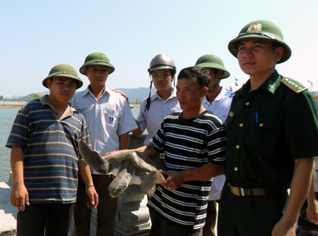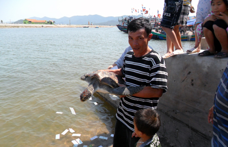 Tinmoitruong.vn giới thiệu chùm ảnh thả con vích do ngư dân bắt được về với biển: