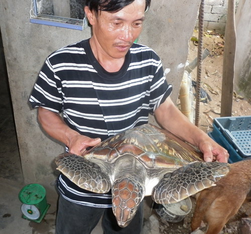 Cũng năm 2011, vào ngày 3/1/2011, khi đang thực hiện đánh bắt cá trên vùng biển chung giữa Việt Nam và Trung Quốc, anh Lê Tiến Liệu, thôn Quyết Tiến, xã Quỳnh Phương, huyện Quỳnh Lưu, tỉnh Nghệ An đã bắt được con vích nặng gần 70 kg, dài khoảng 1m, chiều rộng của mai chỗ lớn nhất là 70cm.