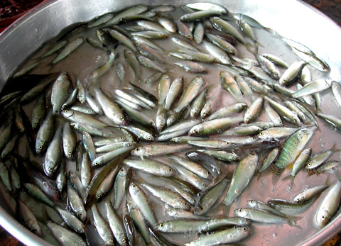 Cá linh đã nuôi thương phẩm được trong ao đất