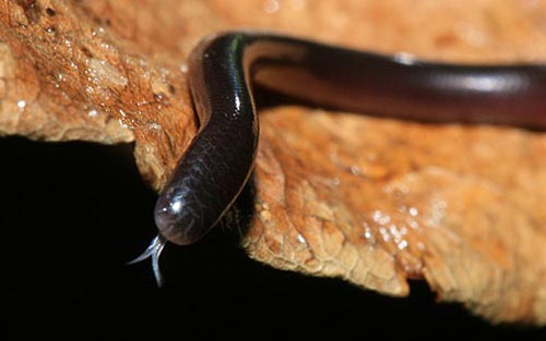 | Và cái lưỡi không thể nhẫm lẫn của loài rắn. Khác với cái đầu tròn như đầu giun, phần đuôi rắn giun khá nhọn.