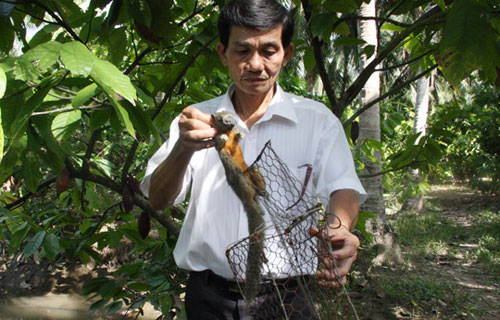 Hiện ca cao của ông sắp vào vụ thu hoạch nhưng sóc đã cắn phá hư gần 50%. Còn vườn ca cao 10ha của ông Phạm Hoàng Phúc ở gần đó bị sóc gặm hết 70% trái. “Chúng tôi đặt bẫy đầy trong vườn nhưng không bắt được bao nhiêu con. Sócsinh sản rất nhanh, bà con ở đây đã bắt cả trăm con nhưng không giảm được số trái ca cao bị cắn phá. Trước đây sóc chỉ cắn phá ban đêm, nhưng bây giờ chúng ngang nhiên cắn phá ngay ban ngày trước mặt mình” - ông Mười nói.