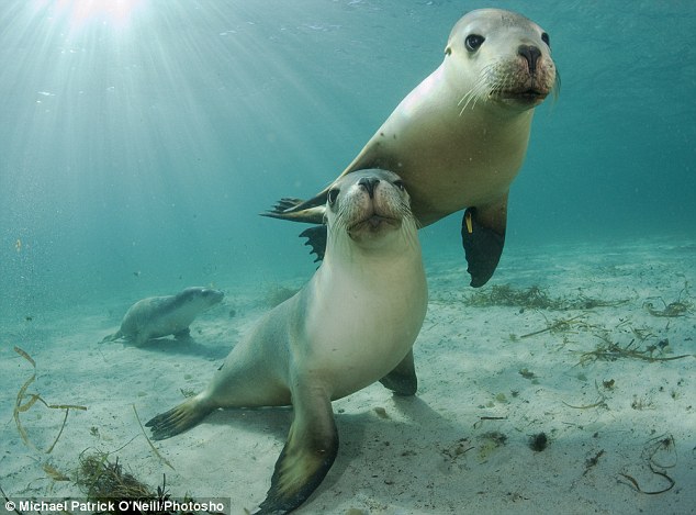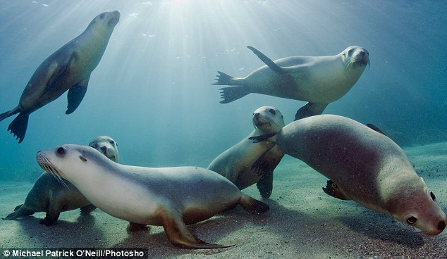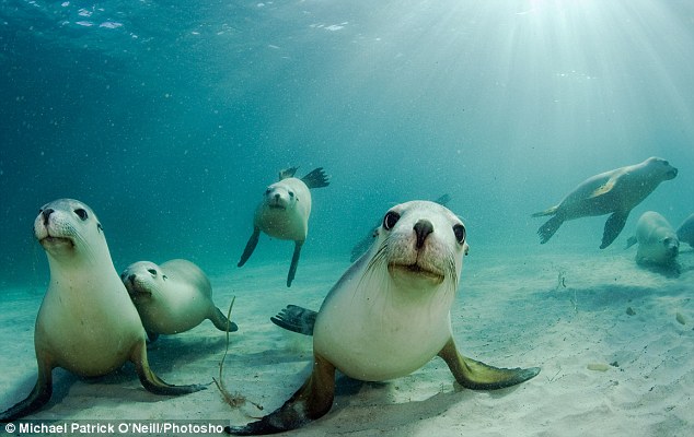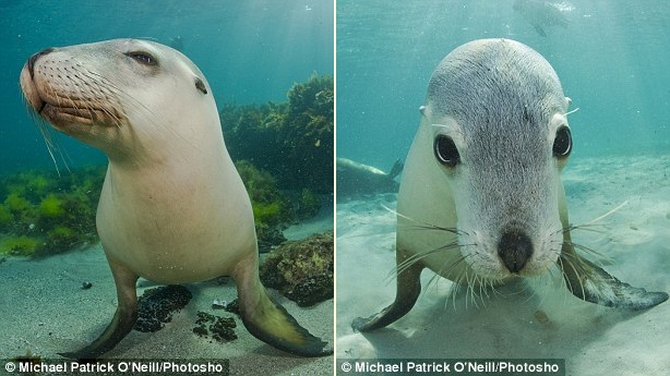 (09:00:49 AM 31/07/2012)Nhiếp ảnh gia người Mỹ Michael O’Neil chuyên về cuộc sống hoang dã cho biết: "Lúc tôi nhảy từ thuyền xuống nước, tất cả các chú sư tử biển con đều đuổi theo tôi. Chúng theo sau một con lớn đã vượt qua tôi mấy lần để điều tra về tôi".