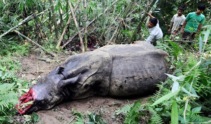 | Tê giác một sừng bị bắn và cắt sừng đến chết (Ảnh: China.org) |