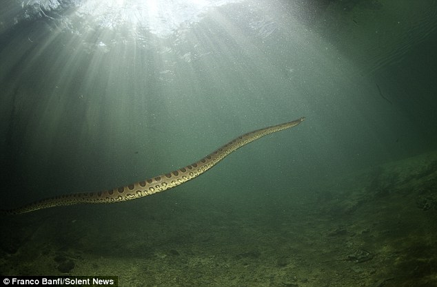 Mới đây, Franco Banfi, 53 tuổi, một thợ lặn, cũng là một nhiếp ảnh gia dũng cảm đã đến Mato Grosso, một bang có nhiều đầm lầy và rừng ngập nước của Brazil với quyết tâm ghi lại những hình ảnh của loài trăn khổng lồ này.