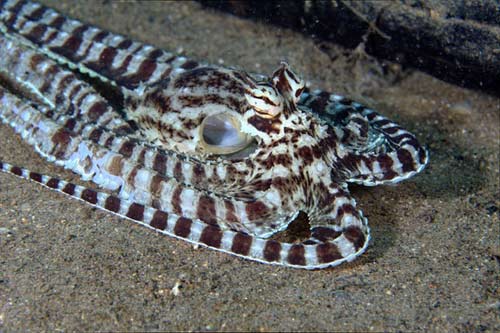 Bằng cách ngụy trang thành “những kẻ nguy hiểm hơn” của đại dương, bạch tuộc biến hình có khả năng trốn tránh kẻ thủ và tự do kiếm ăn trong lòng đại dương.