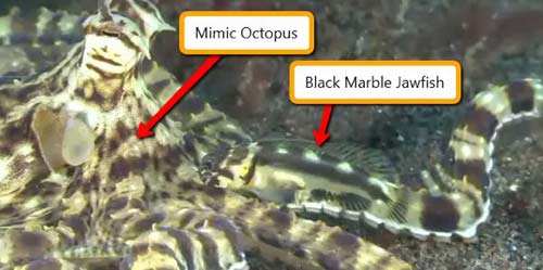 Nếu bạch tuộc biến thân thành cá, thì giờ đây các nhà khoa học đã tìm thấy loài cá có khả năng ngụy trang thành bạch tuộc. Đó chính là cá hàm cẩm thạch đen (Black Marble Jawfish).