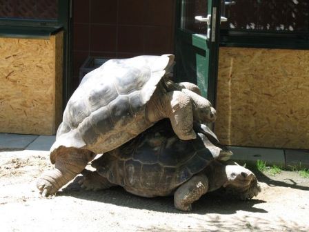 Tin tốt là cặp vợ chồng này không tìm cách giết hại lẫn nhau. Rùa không có răng, nhưng chúng sở hữu miệng vành sừng và một bộ hàm cực chắc khỏe. Bọn chúng có thể cắn phập vào nhau dễ dàng. Các nhân viên sở thú đã không muốn chờ cho điều này xảy ra.