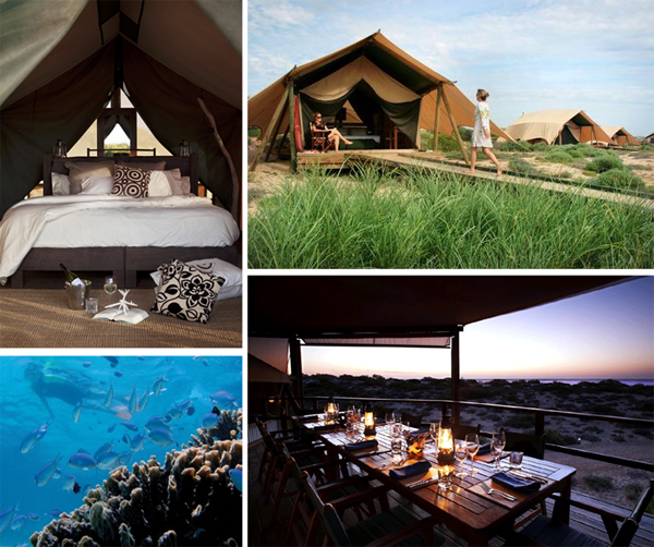 Khu cắm trại Sal Salis Ningaloo Reef ẩn mình trong những đụn cát trắng của Công viên Quốc gia Cape Range, Tây Úc, gồm 9 lều trại được dựng gần khu vực san hô lớn nhất thế giới. Điều thú vị ở đây là tất cả nguồn điện đều lấy từ năng lượng mặt trời.