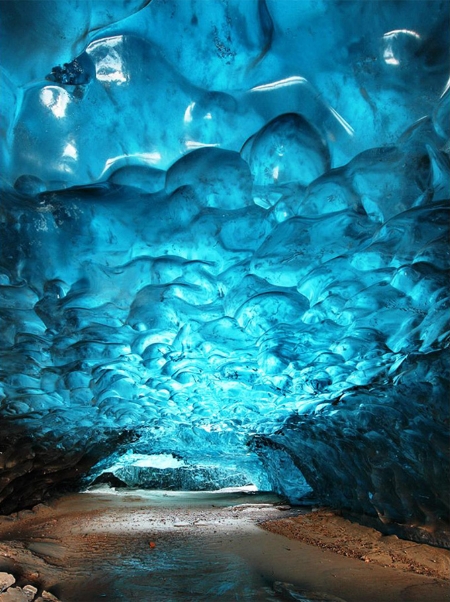 Hang băng Skaftafeli nằm trong khuôn viên công viên quốc gia Skaftafeli ở niềm Nam Iceland. Bước vào hang bạn sẽ có cảm giác như bước vào trong nhà gương bởi băng ở đây trong suốt.