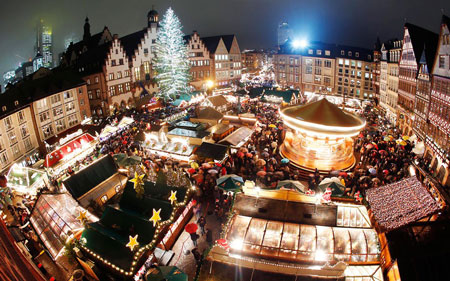 Vui chơi ở hội chợ Giáng sinh Frankfurt.