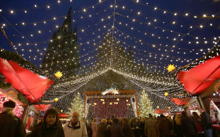 Hội chợ Giáng sinh mọc lên khắp nơi tại Đức trong những ngày này. Trong ảnh là hội chợ ở gần nhà thờ Cologne.