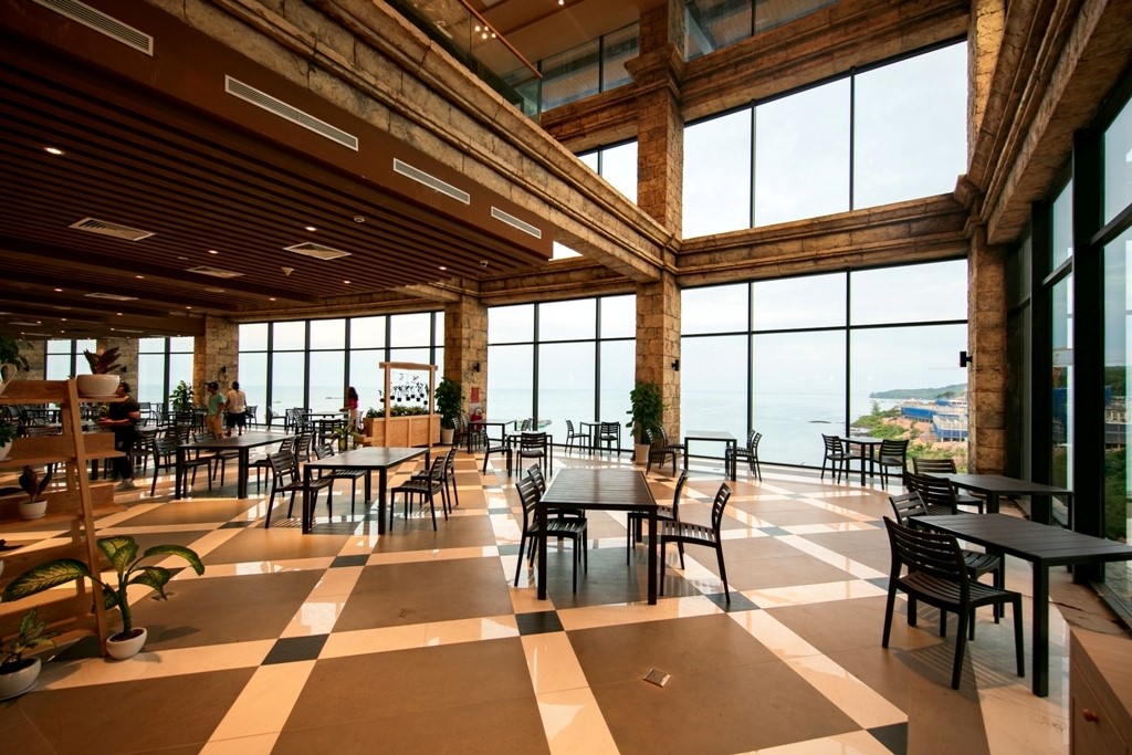 …hay tận hưởng không gian yên bình, thơ mộng bên ly cafe, ngắm cảnh hoàng hôn trên biển nhuộm sắc tía hồng quyến rũ. Coffee Culture ngay khu vực Ga đến Cáp treo là nơi bạn có thể nhâm nhi tách trà, ngắm đàn cá Koi rực rỡ đến từ Nhật Bản đang hòa mình trong hồ nước trong xanh…