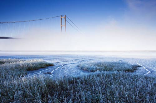 | Cây cầu Humber nổi tiếng ở Nam Lincolnshire ẩn hiện trong sương huyền ảo. |