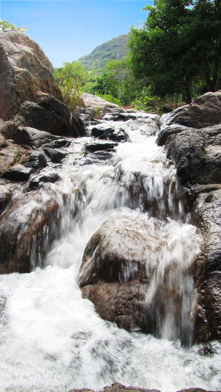 Đi qua cây cầu treo khoảng 15 phút, bạn còn có thể đến suối Lồ Ồ với dòng nước mát rười rượi cùng các tảng đá to nhỏ chồng lên nhau. Xung quanh là rừng cây bao phủ thanh mát như chốn bồng lai.