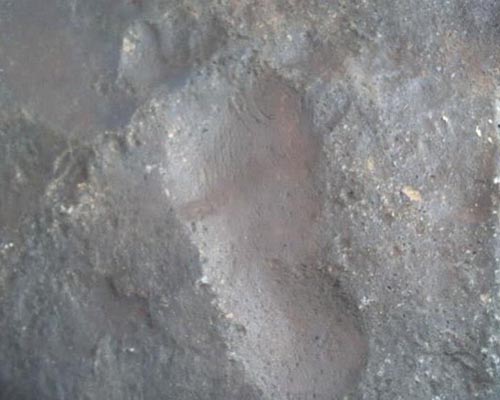 Bàn chân in trên tảng đá có chiều dài hơn 25cm. Nhiều người còn khẳng định đây là dấu chân của người tiền sử bị