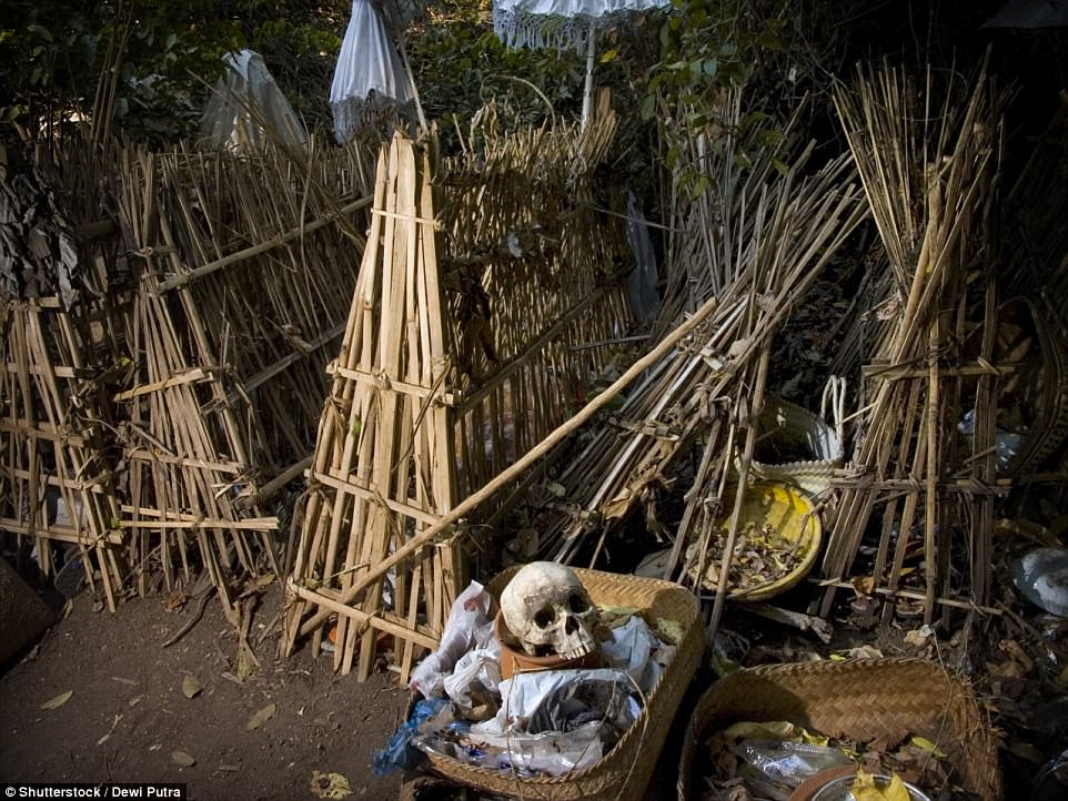 Phong tục phơi thây người chết trong lồng tre trên đảo Bali Khi một người đã kết hôn trong làng qua đời, nam giới trong làng sẽ đưa thi thể đến nghĩa trang và đặt trong lồng tre để xác tự phân hủy.