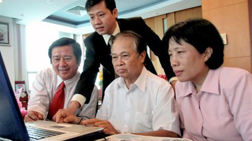| Các khách mời hội ý trả lời câu hỏi cho độc giả - Ảnh: Thanh Đạm |