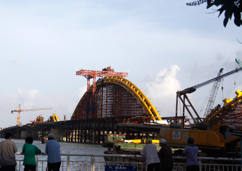 Dự án cầu Rồng là công trình trọng điểm được UBND TP Đà Nẵng khởi công tháng 7/2009, với tổng đầu tư gần 1.500 tỷ đồng. Công trình đã hợp long vòm thép đoạn 4, đoạn vòm thép dài và cao nhất. Đây là cầu thứ 6 bắc qua sông Hàn, dài trên 666 mét, nhịp chính dài 200 mét, rộng 37,5 mét, có 6 làn xe...