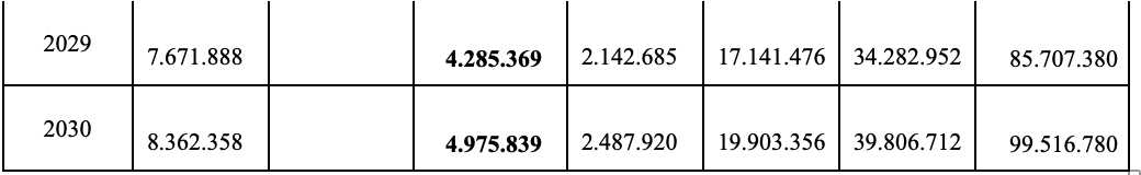 của giai đoạn thử nghiệm là 1.268.793$ và tăng đến 2.487.920$ vào năm 2030 (sau 3 năm áp dụng