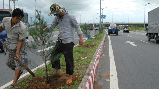Trồng 500 cây dương xanh dọc đường dẫn cầu Cần Thơ