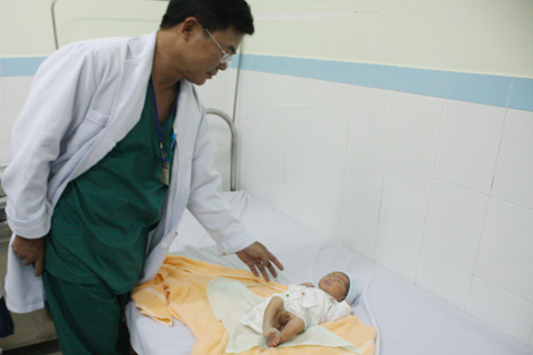| Phó giám đốc bệnh viện, bác sĩ Trương Quốc Chương liên tục xuống kiểm tra sức khỏe cậu bé tội nghiệp này. |