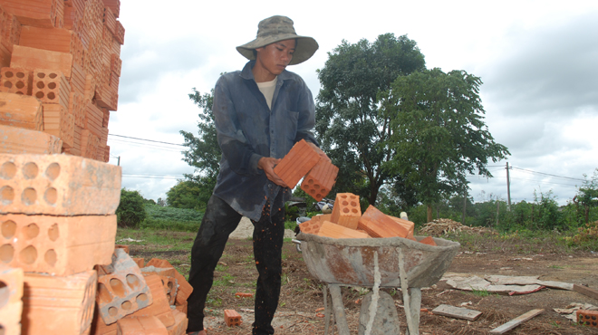 | Vũ Nguyễn Ngọc Anh đi phụ hồ kiếm tiền nhập học - Ảnh: B.D. |