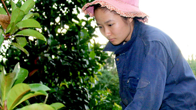 | Bạn Phạm Thị Thu tranh thủ phụ giúp gia đình trước lúc nhập trường... - Ảnh: Tr. Tân |