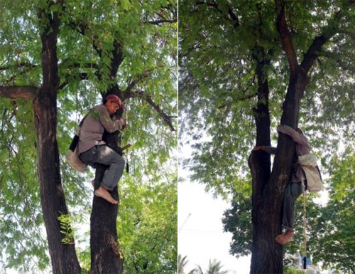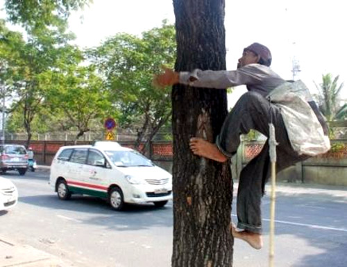 Mấy ngày nay, trên mạng xã hội nhiều người chia sẻ hình ảnh đôi vợ chồng già ngày ngày trèo lên những cây me cao vút ở Sài Gòn hái trái để bán cho người qua đường.