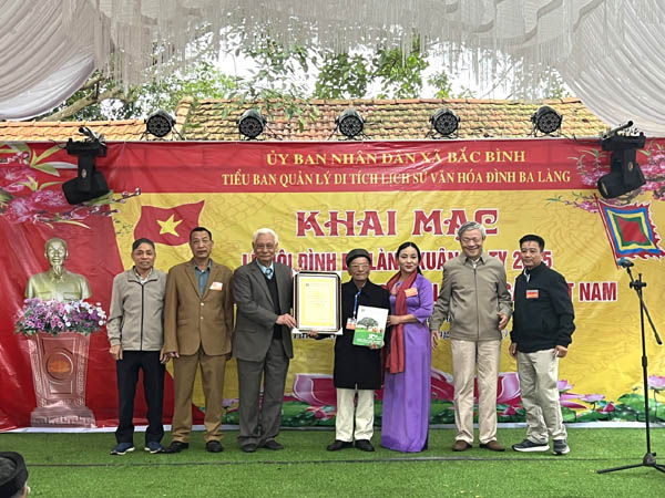 (07:41:53 AM 25/02/2025)(Tin Môi Trường) - Cây Trôi hơn 300 năm đứng trước cửa đình Ba Làng, xã Bắc Bình, huyện Lập Thạch, tỉnh Vĩnh Phúc (cách trung tâm Hà Nội khoảng 80 Km về hướng Tây Bắc) được cộng đồng tổ chức Lễ đón Bằng công nhận Cây Di sản Việt Nam vào sáng 23/2/2025.