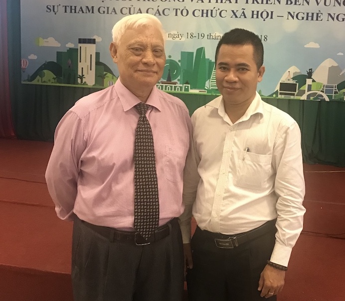 TS. Nguyễn Ngọc Sinh, Chủ tịch Hội BVTN&MT Việt Nam (trái) và nhà báo Lê Việt Nhân, Uỷ viên Ban chấp hành Trung Ương Hội BVTN&MT Việt Nam