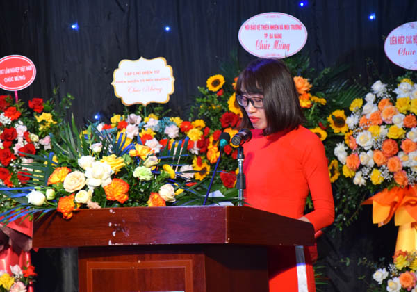 Bà Nguyễn Thị Huyền, thay mặt Bộ Tài nguyên và Môi trường phát biểu tại Đại hội