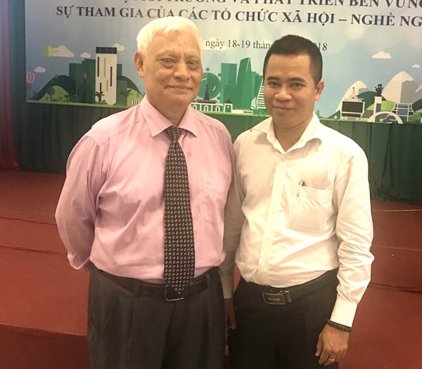 TS Nguyễn Ngọc Sinh, Chủ tịch Hội bảo vệ Thiên nhiên và Môi Trường Việt Nam (trái) và Nhà báo Lê Việt Nhân- phụ trách nội dung Tin Môi Trường (cpeco.org.vn)