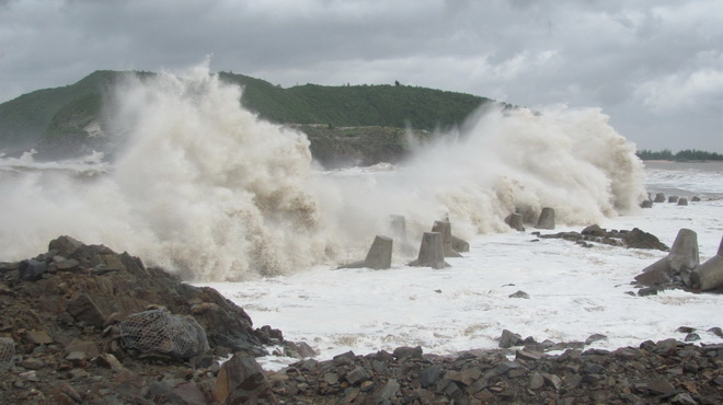| Bão số 8 (Sơn Tinh) tạo sóng lớn đánh sập và làm biến dạng hoàn toàn đê biển Hòn La (Quảng Bình) trước khi suy yếu rạng sáng nay 29-10 - Ảnh tư liệu |
